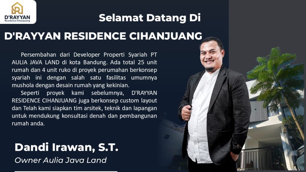 Merupakan Proyek ke 10 dari Developer terpercaya Aulia Java Land yang telah sukses membangun beberapa proyek perumahan di Bandung dan sekitarnya dengan skema syariah.